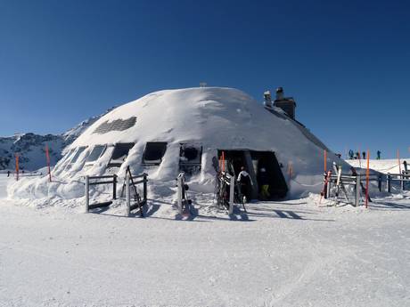 Das größte Bergigloo der Alpen bietet eine perfekte kombination zwischen Skifahren und Tafelfreuden. Das Restaurant bietet ein Gericht des Tages, eine Suppen-Bar, Pasta, Chicken Nuggets oder Weißwürste. Der Lounge-Bereich bietet Entrecôte "Cafe de Paris" auf Vorbestellung.