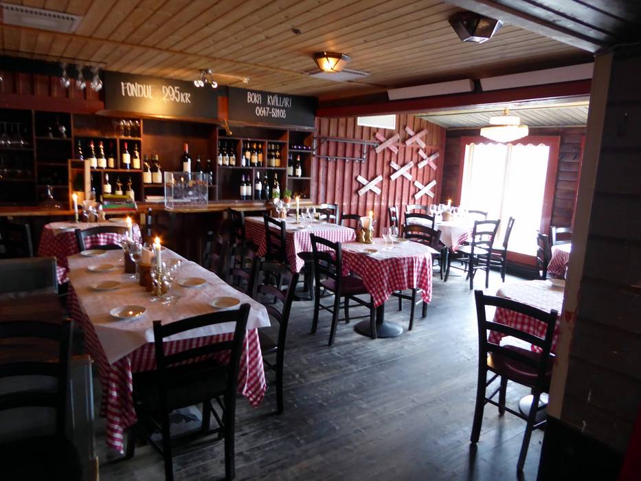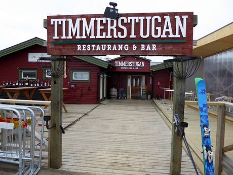 Die exklusive Timmerstugan bietet raffinierte Gerichte. Eine große Getränkeauswahl rundet das Angebot ab. Am Abend kann man hier auch ein Fondue genießen.