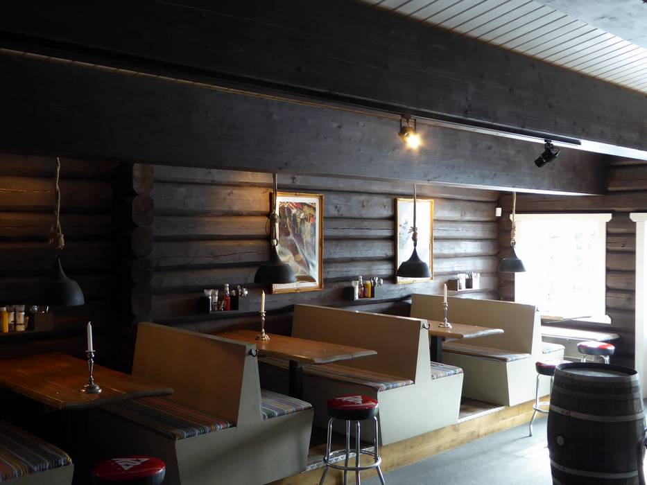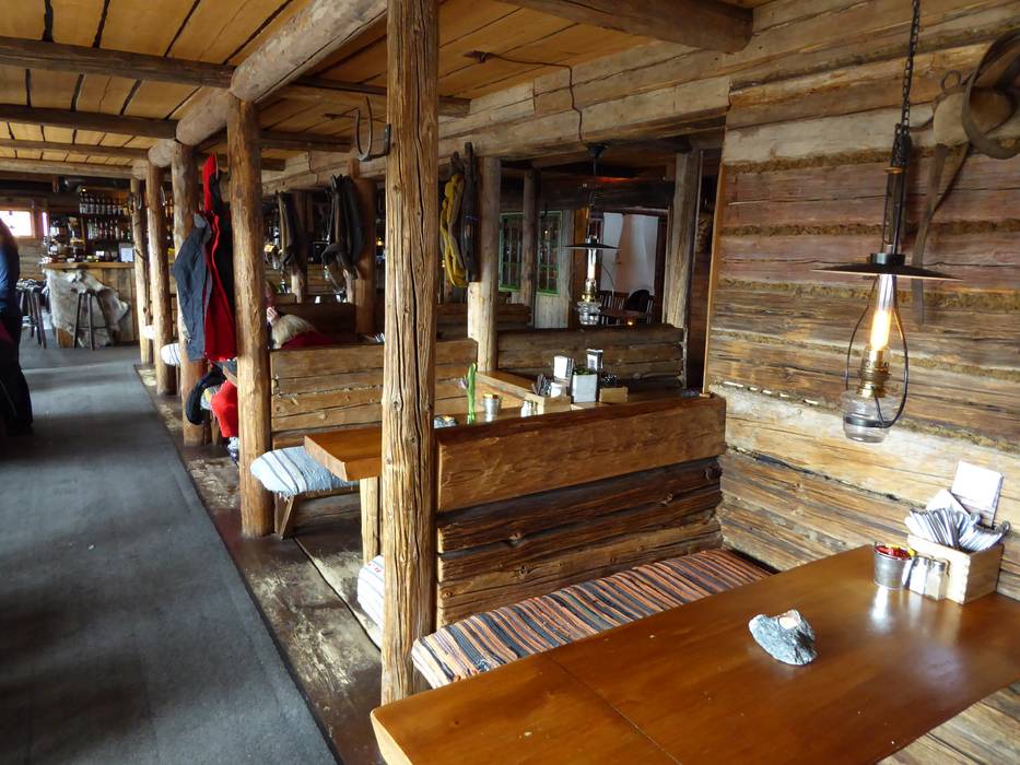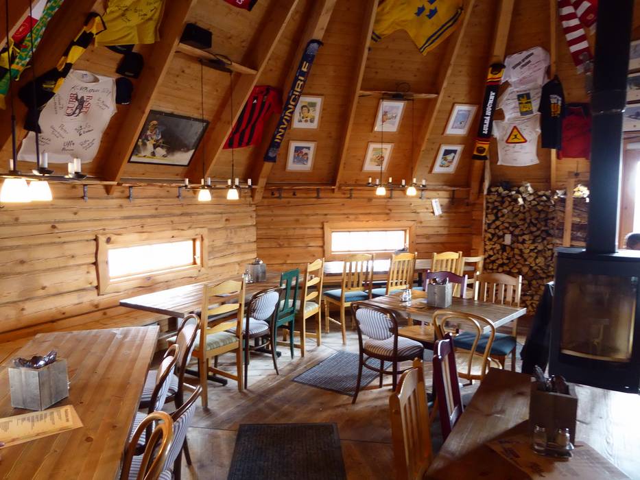 Die urige Hütte aus Holz bietet einen wärmenden Kamin und schwedische Spezialitäten. Die Sonnenterrasse bietet einen fantastischen Blick. Es wird hier das österreichische Stieglbier aus dem Fass ausgeschenkt.