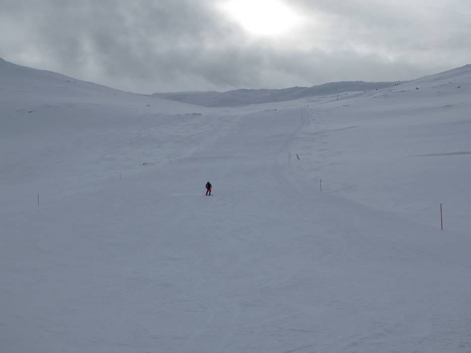 Die längste Abfahrt im Skigebiet von Åre führt vom Gipfel Åreskutan über die leichten Pisten Nr. 35, 49, 47, 50 und 48 bis ins Tal nach Åre By.
