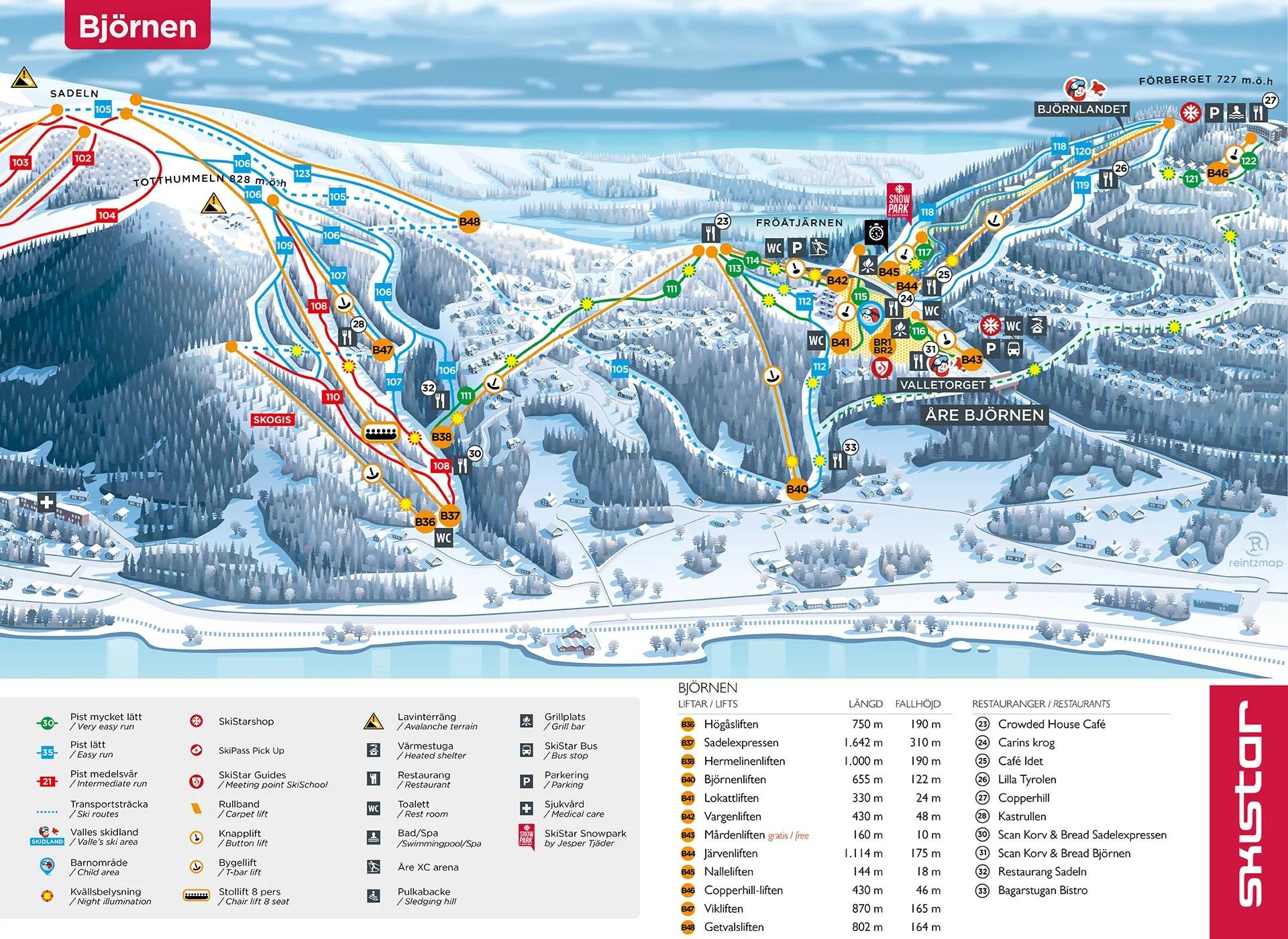 Åre (0,2 km), Björnen (0,2 km), Björnänge (4 km), Duved (8 km) Orte am Skigebiet