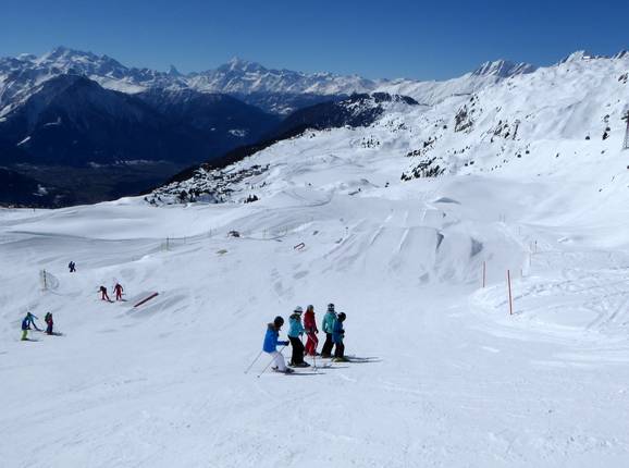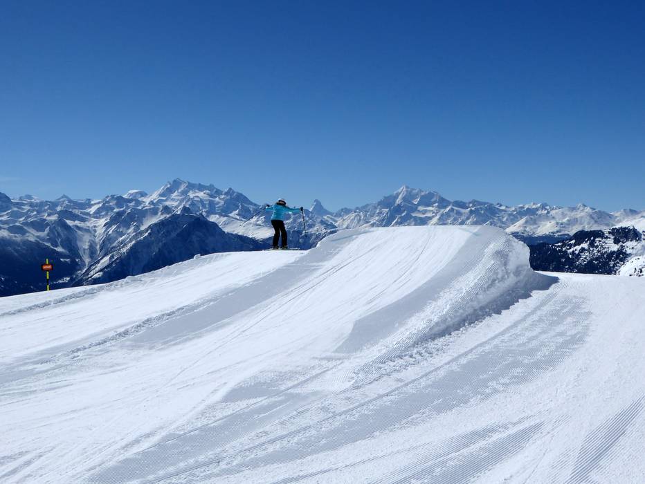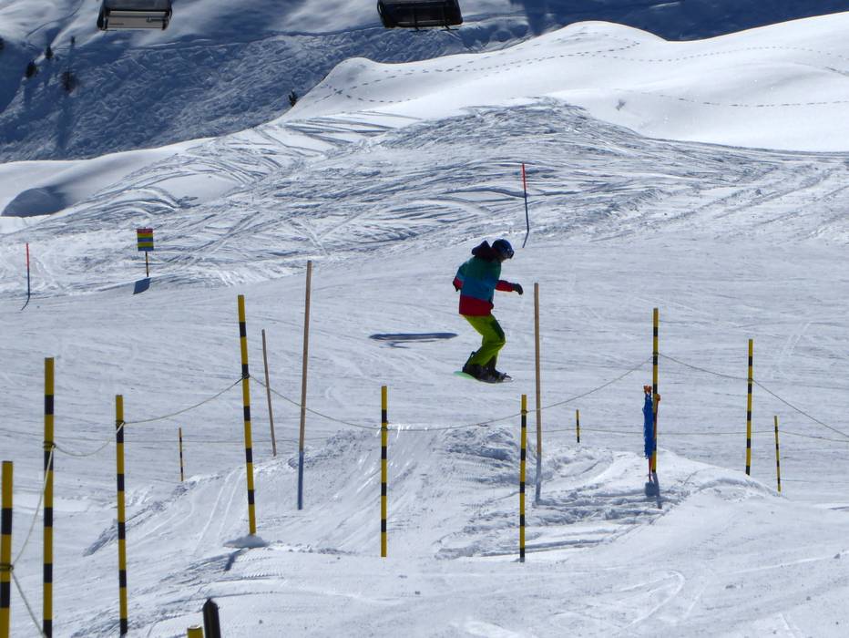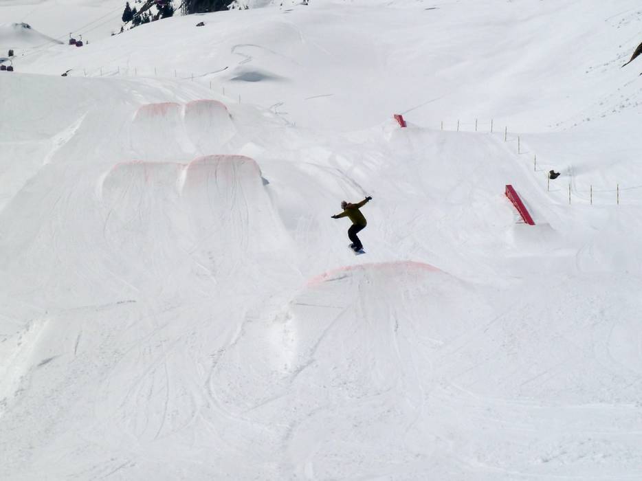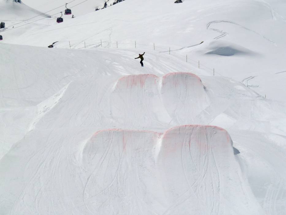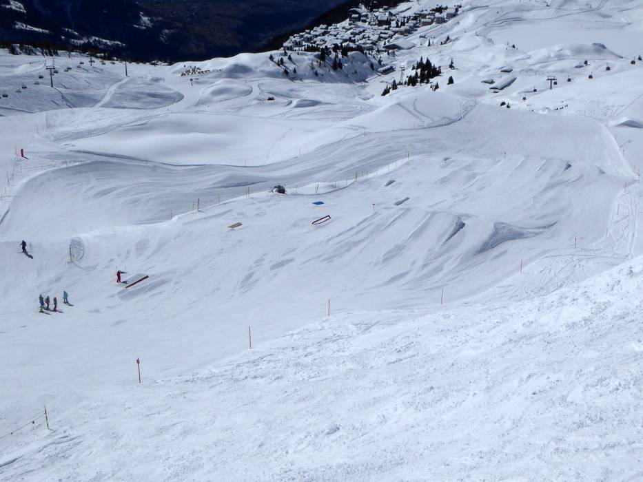 Kleiner Snowpark auf der Fiescheralp mit kleinen Jumps und Hindernissen.