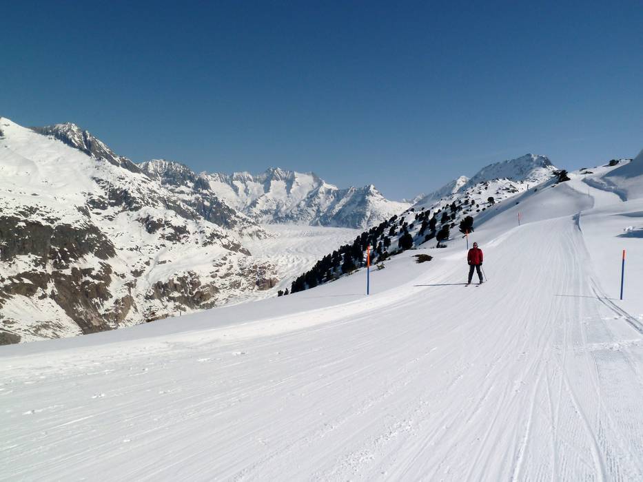 Die Aletsch Arena bietet einen guten Mix aus leichten, mittelschweren und schweren Abfahrten oberhalb der Baumgrenze. Diese sind sehr reizvoll in die Landschaft integriert. An den Aussichtspunkten Moosfluh, Hohfluh, Bettmerhorn, Eggishorn hat man einen fantastischen Blick auf den 23 Kilometer langen Grossen Aletschgletscher, den längsten Eisstrom der Alpen und Herz des UNESCO Welterbes Schweizer Alpen Jungfrau-Aletsch. Von einigen Panoramapisten ist die atemberaubende Naturlandschaft ebenfalls zu genießen. Beeindruckend ist zudem die freie Sicht auf die schönsten Viertausender des Wallis.