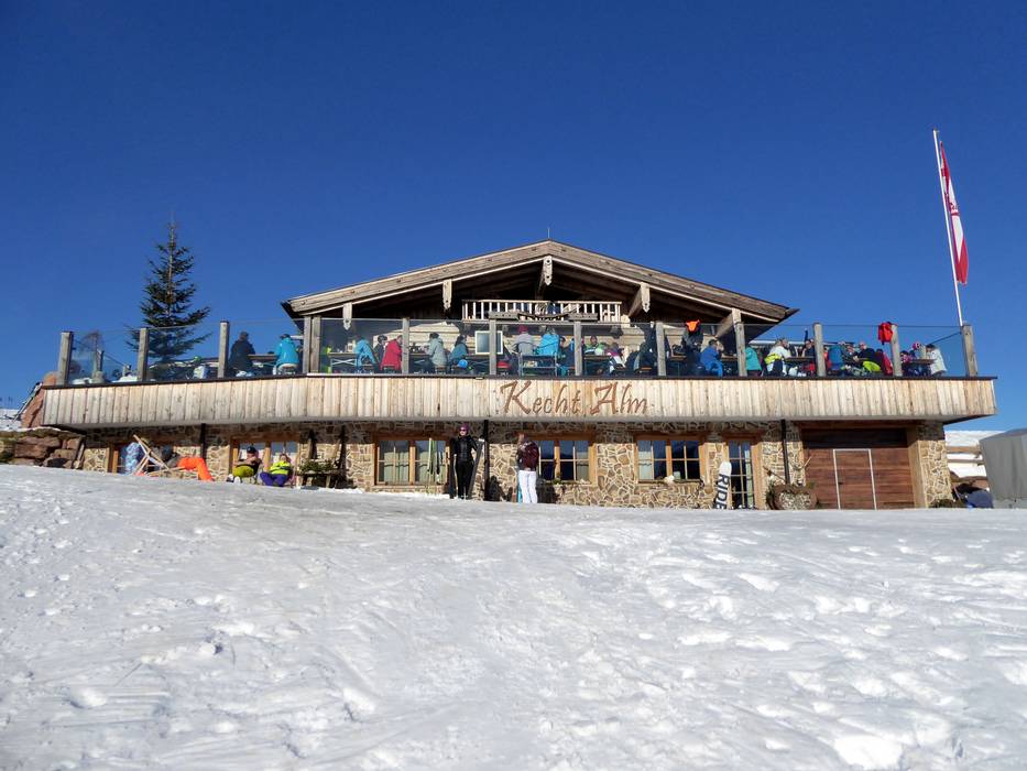 Die Kechtalm ist eine urige Hütte mit viel Holz und einer schönen Sonnenterrasse. In der höchsten Einkehrmöglichkeit im Skigebiet Almenwelt Lofer kann man sich mit regionalen Spezialitäten verwöhnen lassen und das einmalige Panorama genießen.