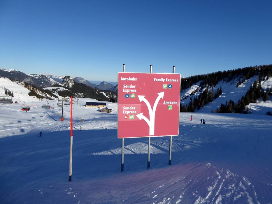 Informationstafel am Schwarzeck Aktuelle Ski-Infos an der Talstation Ausschilderung auf den Pisten Ausschilderung auf den Pisten Ausschilderung auf den Pisten Pistenmarkierung im Skigebiet Loferer Alm Informationstafel an der Talstation Fehler aufgefallen? Hier können Sie ihn melden