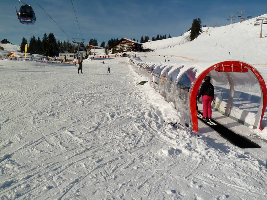 3 Übungslifte werden im neuen Kinderland durch ein modernes 140 m langes, überdachtes Förderband ersetzt, welches optimalen Komfort bei jedem Wetter garantiert. Diese Skigebietserweiterung mit einer kindersicheren Anlage und den zusätzlichen Pisten ist für das Familienskigebiet eine maßgeschneiderte Ergänzung. Damit stehen Komfort, Qualität und Kundenzufriedenheit noch mehr im Mittelpunkt.Skigebietserweiterung Schwarzeck mit 8er-Sesselbahn