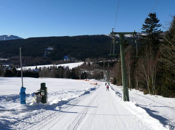 Das Skigebiet Alpalouka ist mit einem Schlepplift und einem Tellerlift überschaubar. Die leichte Piste ist sehr breit.