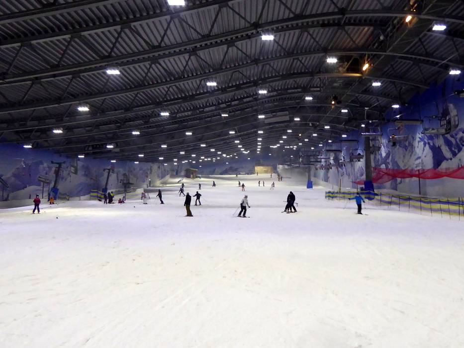 Der Alpenpark Neuss bietet zumeist leichte Pisten. Die Skihalle weist im oberen Bereich ein maximales Gefälle von 28 % auf, verflacht dann auf 15 % und am Ende auf 10 % Gefälle. Lediglich der oberste Teil der Hauptpiste ist als mittelschwer einzustufen. Rodelbahnen, Rennstrecke und Skifahren bis in die späten Abendstunden runden das Angebot ab. Alle Liftticket-Käufer können zusätzlich auch die Rodelbahn kostenfrei benützen.