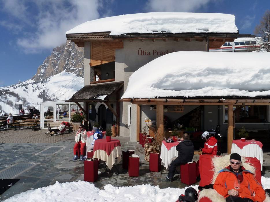 Die Ütia Pradat am Col Pradat in Colfosco/Kolfuschg bietet einen perfekten Blick zum Mittagstal. Es gibt einen SB-Bereich und einen bedienten Bereich. Hier werden erstklassige Speisen mit edlen Weinen serviert. Die Bar bietet Köstlichkeiten mit Champagner. Es ist auch möglich auf der Hütte zu übernachten.