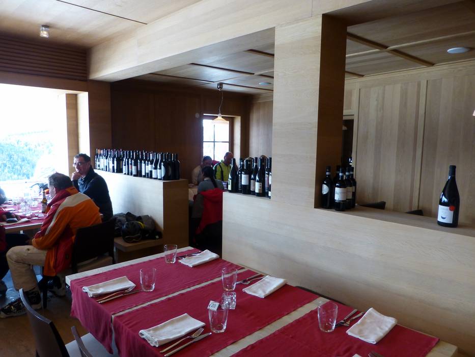 Die urige Hütte ist ein beliebter Gourmetstop für Skifahrer. Auf der großen Terrasse oder in den ladinischen Stuben kann man typische lokale Gerichte mit einem guten Glas Wein genießen. Zusätzlich lockt die Vinotecca mit edlen Weinen.