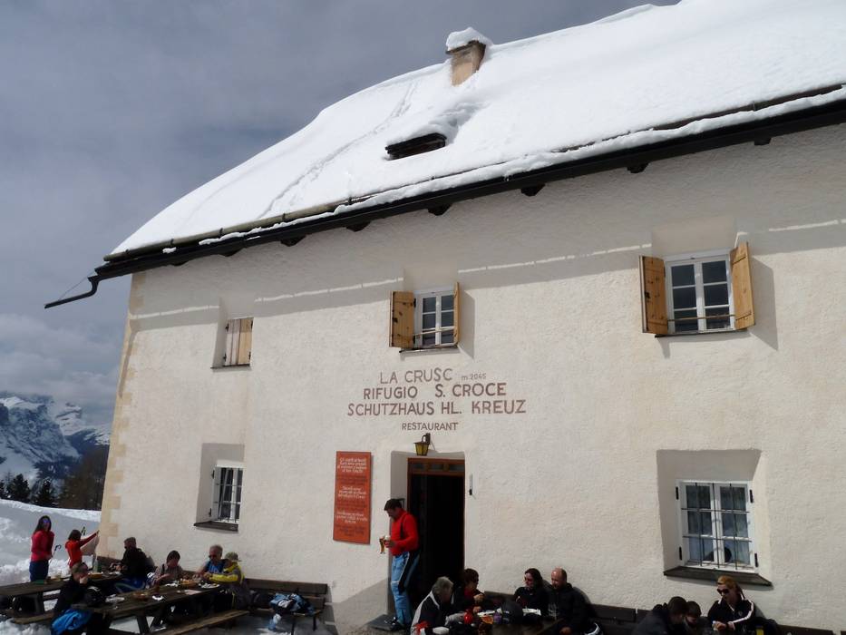 Einer der schönsten Aussichtsplätze in Alta Badia bietet das Rifugio Santa Croce/Hl. Kreuz. Eine historische Wallfahrtskirche und ein nostalgisches Hospiz runden das Angebot auf 2045 m Höhe ab. Es werden traditionelle Gerichte, wie Gerstesuppe, Knödel, Kaiserschmarrn und Pasta angeboten.
