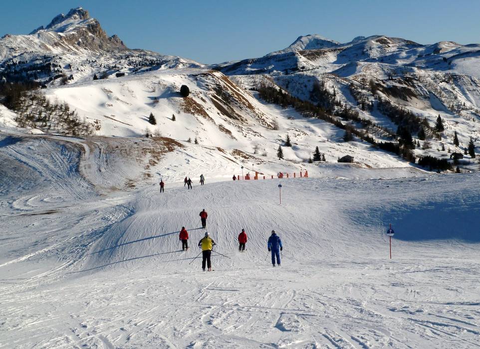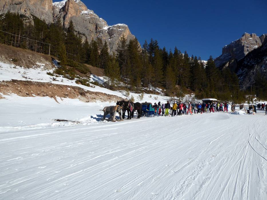 Eine schöne Skiabfahrt im Unesco Weltnaturerbe kann man bei der Lagazuoi Tour erleben. Man muss bis nach Armentarola fahren und dann ein Taxi zum Falzarego Pass nehmen. Mit der Seilbahn geht es dann bis auf 2.770 m zum Start der Abfahrt. Zurück zum Ausgangspunkt kommt man mit einer Art Öko-Taxi. Die Skifahrer werden am Seil von Pferden über den Talgrund von der Capanna Alpina Hütte Richtung Armentarola gezogen.