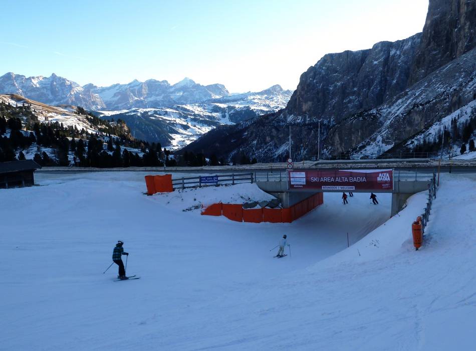 Talabfahrten führen in alle Orte des Skigebietes von Alta Badia.