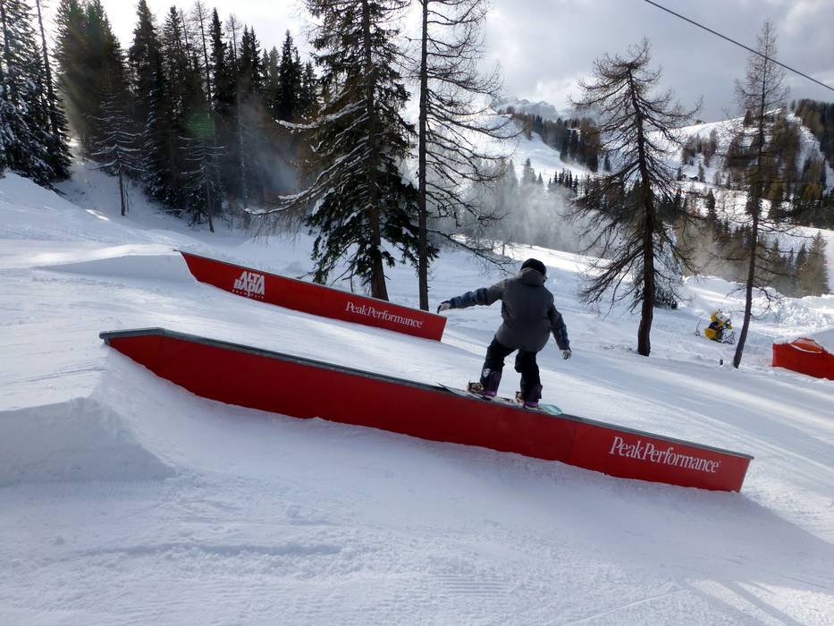 Der Snowpark Alta Badia befindet sich auf dem Hochplateau Piz Sorega an der Sechsersesselbahn Ciampai und bietet tolle Jumps, Boxen und Rails.