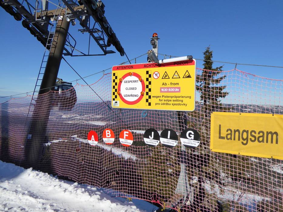 Orientierung (Pistenplan, Informationstafeln, Ausschilderung) und Sicherheit im Skigebiet Arber