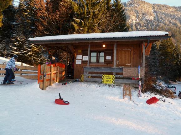 An der Talstation gibt es die urige Rutschbuckel Hütte als einzige Einkehrmöglichkeit im Skigebiet.