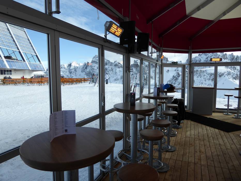 Seit der Saison 2017/18 gibt es eine neue Schirmbar am höchsten Punkt im Skigebiet. Den ganzen Tag über kann man hier einkehren und bei guter Musik verweilen. Gegen Nachmittag gibt es gute Stimmung und man genießt einen einmaligen Blick auf die Kalkkögel und die Stubaier Alpen. Die Schirmbar lässt das Skifahrerherz bei Glühwein, Prosecco, Aperol und Hugo höher schlagen. Aber aufgepasst: man muss die Talabfahrt am Ende des Skitages noch meistern.