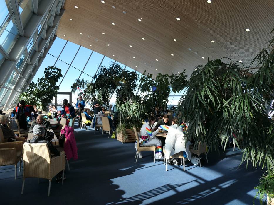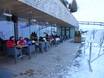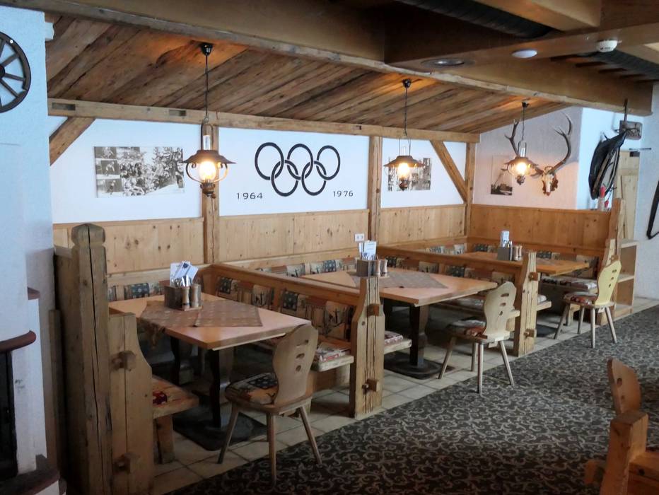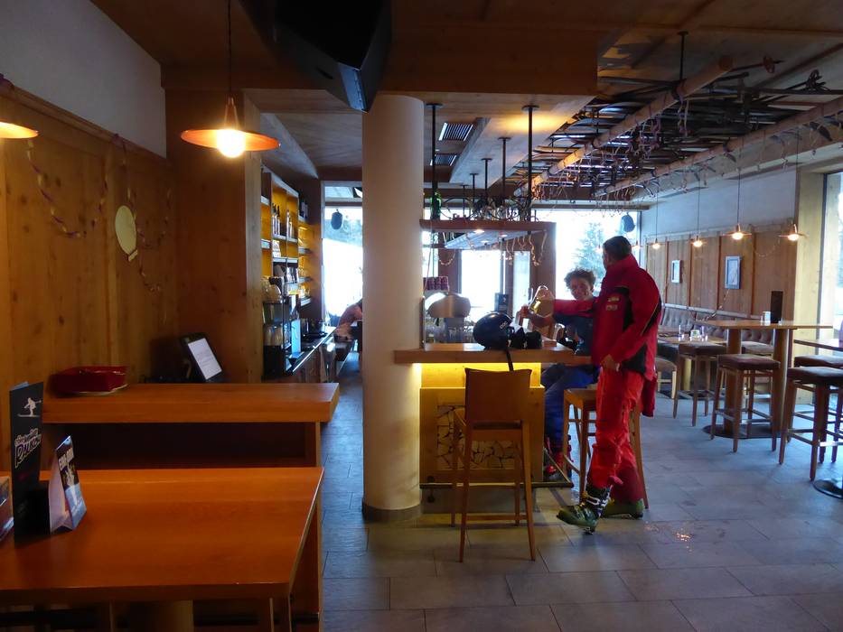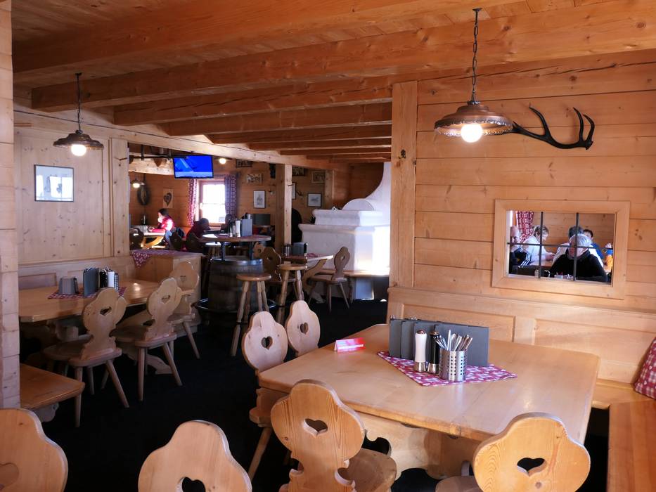 Zentral im Skigebiet gelegen mit bestem Blick auf den Golden Roofpark. Tolle Sonnenterrasse und schöne moderne Holzarchitektur. Gute Suppen und klassische Hütten-Auswahl im SB-Restaurant und im Bedienbereich.