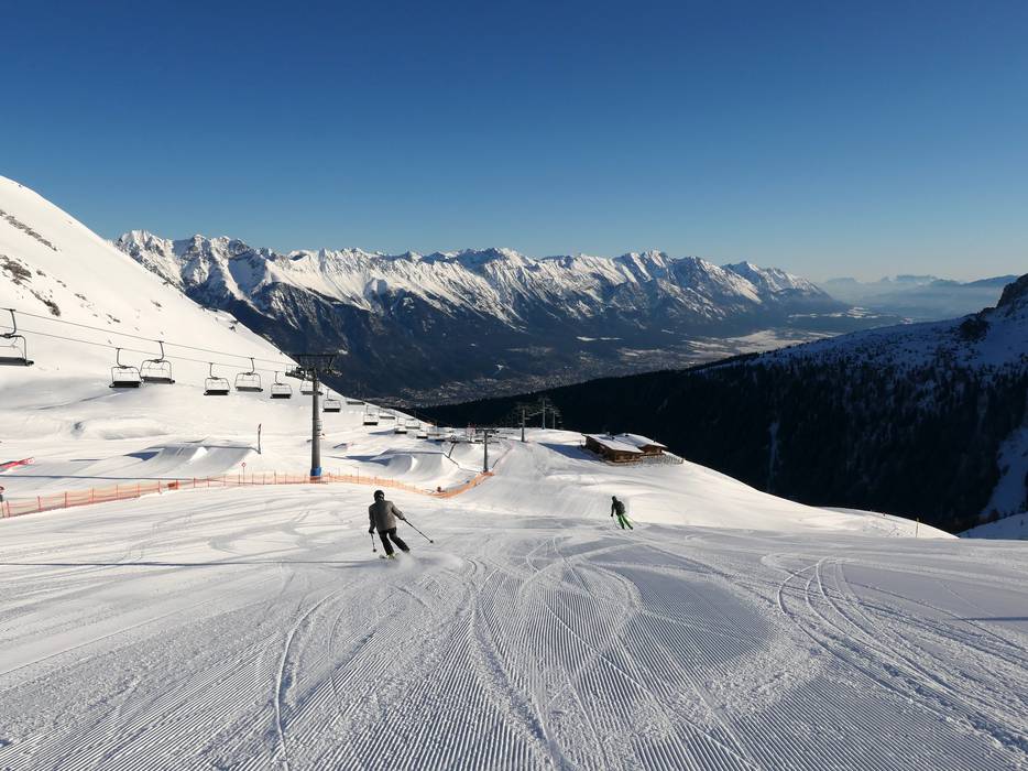 Alle Pisten enden in der Axamer Lizum, eine Skiroute führt sogar bis nach Axams (kein Liftanschluss).