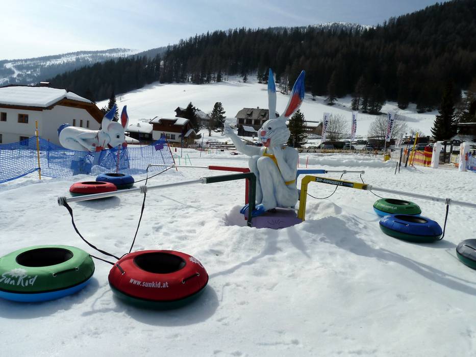 An der Talstation der Kaiserburgbahn befindet sich das Kinderland der Skischule Brunner mit zwei SunKid Förderbändern.