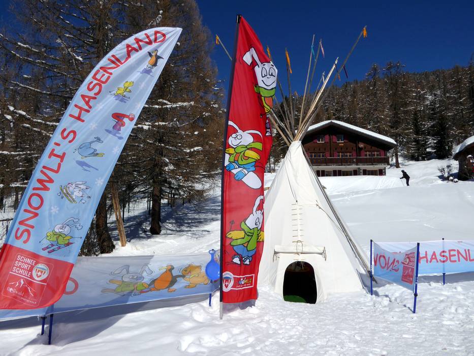 Snowli's Hasenland der Schweizer Schneesportschule Bellwald
