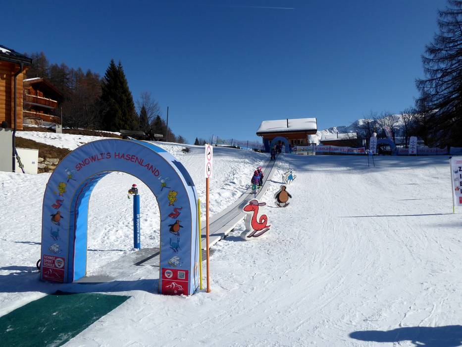 Im Snowli's Hasenland an der Talstation in Bellwald lernen die Kleinen die ersten Schwünge im Schnee. Ein Förderband und ein Seillift stehen hier zur Verfügung. Viele lustige Figuren runden das Angebot ab. Zur Pause geht es in das Tipi-Zelt.