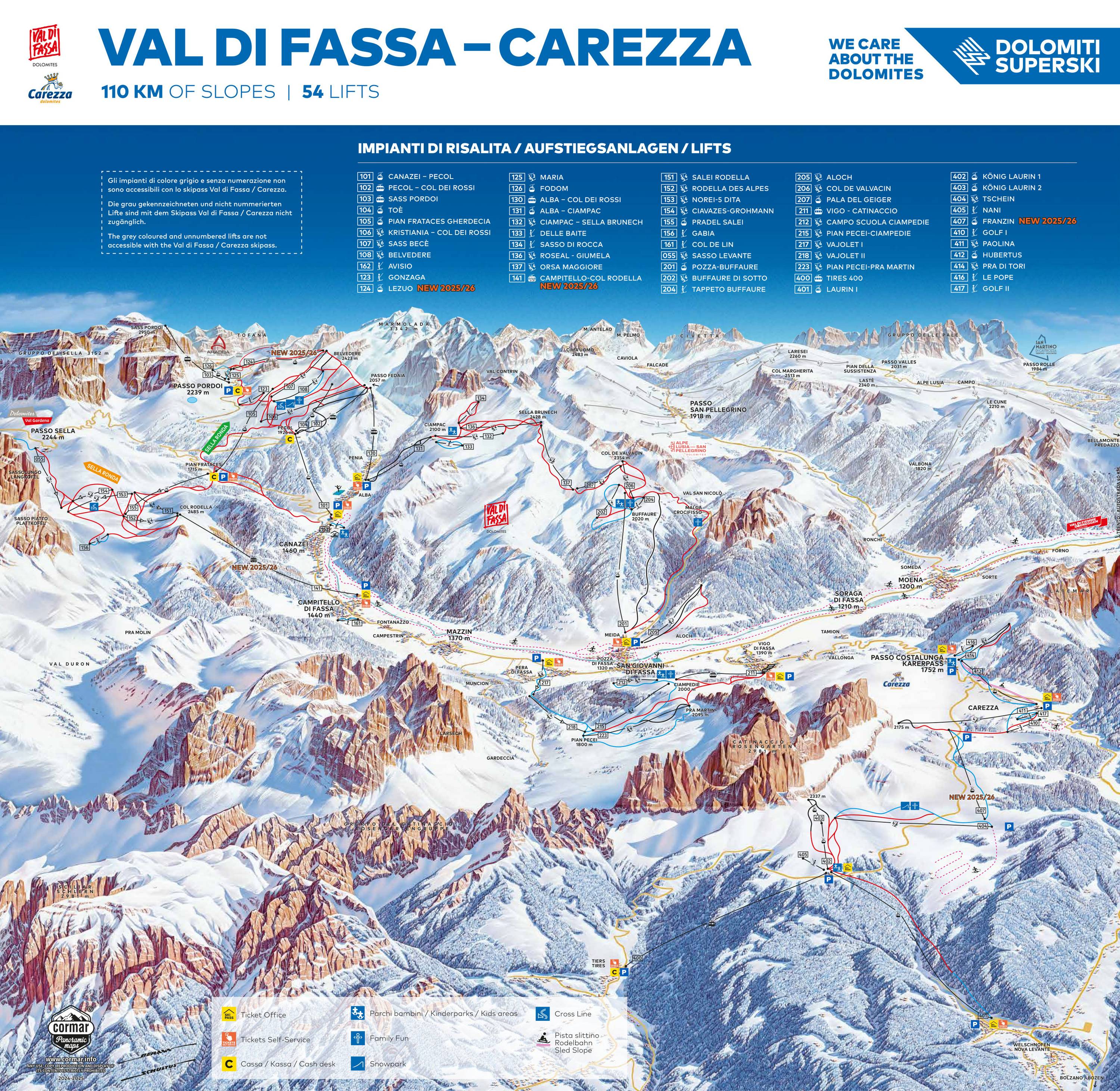 Pistenplan Val di Fassa & Carezza Saison 2025/2026