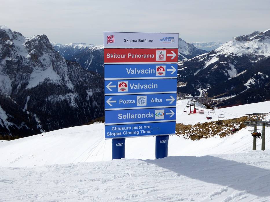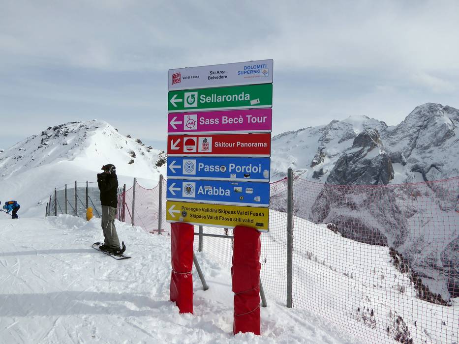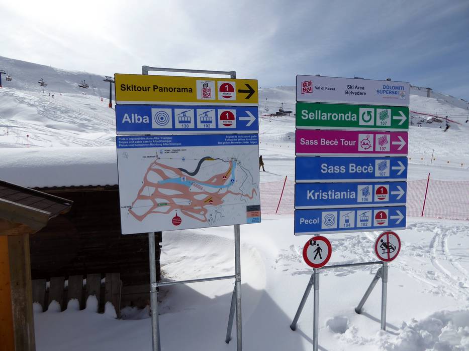 Sämtliche Pisten sind gut beschildert und man findet aktuelle Informationen zu den einzelnen Anlagen und geöffneten Pisten. Die Skitour Panorama und die Sellaronda sind fast überall gut ausgeschildert. Man findet sich im gesamten Skigebiet leicht zurecht.
