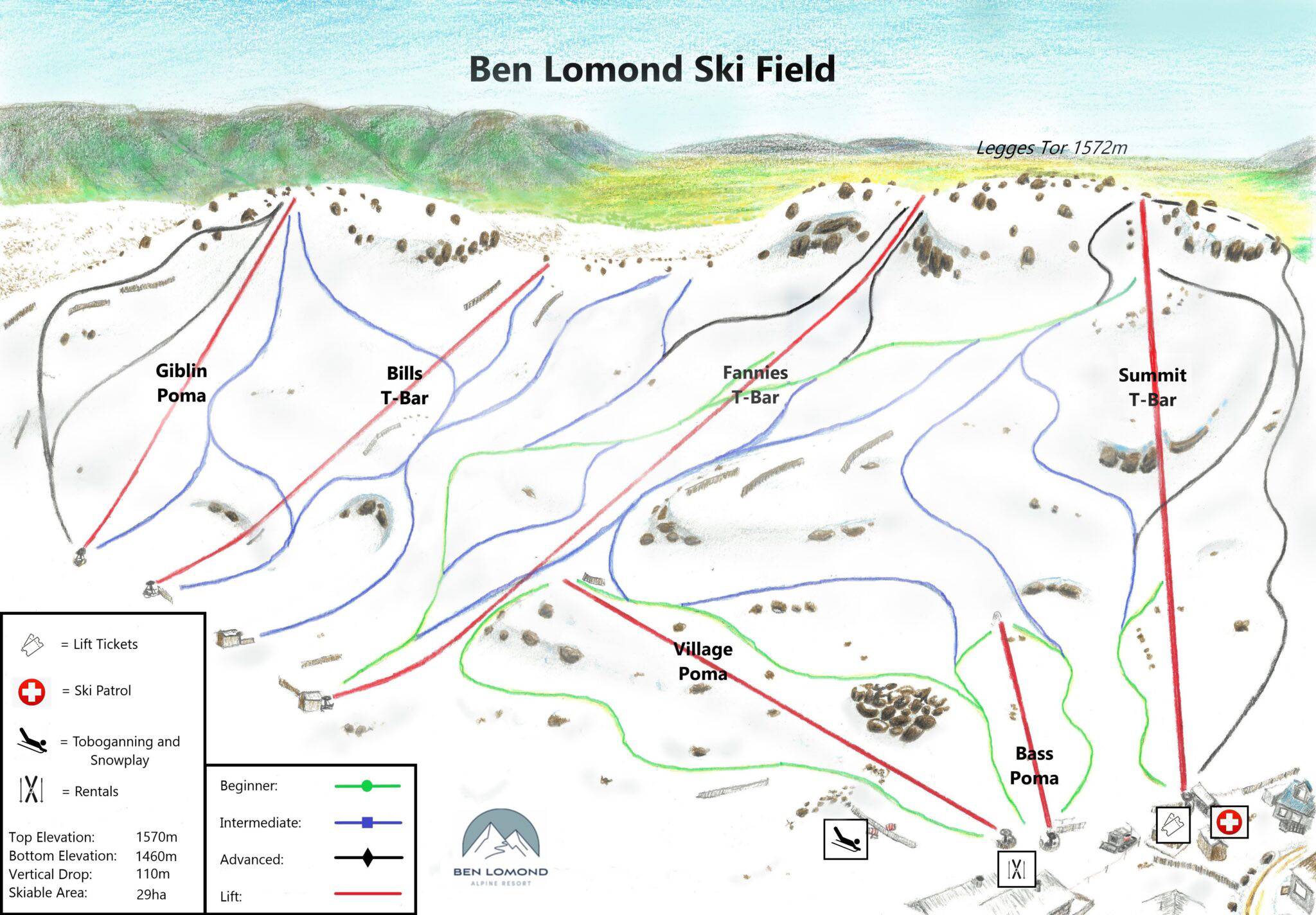Ben Lomond (0,5 km), Launceston (61 km) Orte am Skigebiet