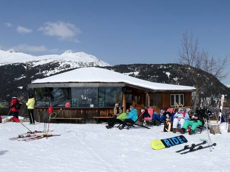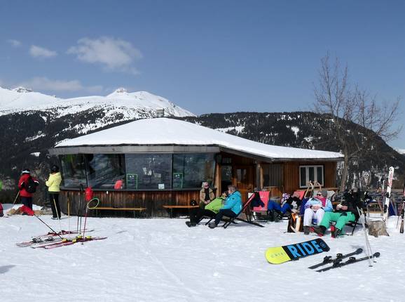 In der Schirmbar oder im Freien bei den gemütlichen Stühlen kann man bei Musik den Skitag Revue passieren lassen.