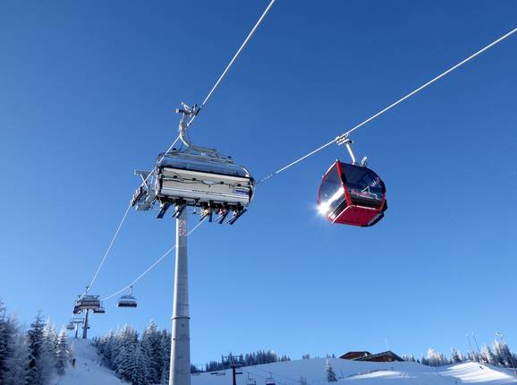Mit der modernen Achtergondelbahn Bergeralm geht es vom Tal zur Mittelstation. Im oberen Teil erschließt die topmoderne Kombibahn Hoher Turm die Pisten zwischen Nößlachjoch und Mittelstation. Die Kombibahn, bestehend aus Sechsersesseln mit Abdeckhauben und Gondeln für 8 Personen, bietet höchsten Komfort mit Sitzheizung und Kindersicherung. Rund um die Mittelstation bedient die Vierersesselbahn Steinboden und ein Tellerlift die Pisten. Zusätzlich gibt es zwei Förderbänder an der Mittelstation für Anfänger. Der Schlepplift Hochsonnlift erschließt die Pisten auf der Südseite am Nößlachjoch.