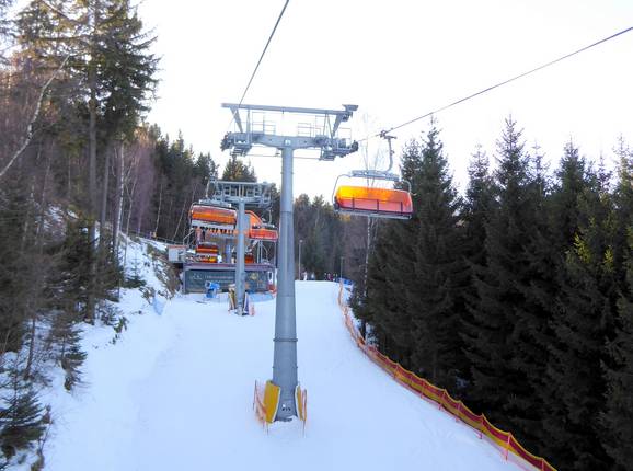 Das Skigebiet Biały Jar in Karpacz wird von einer modernen Sechsersesselbahn mit Wetterschutzhauben erschlossen. Zusätzlich gibt es noch ein Förderband für Familien und Anfänger.