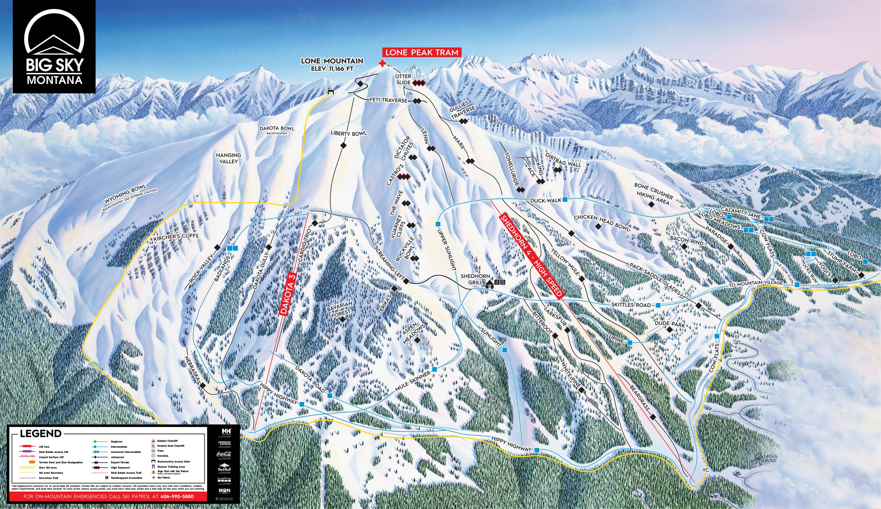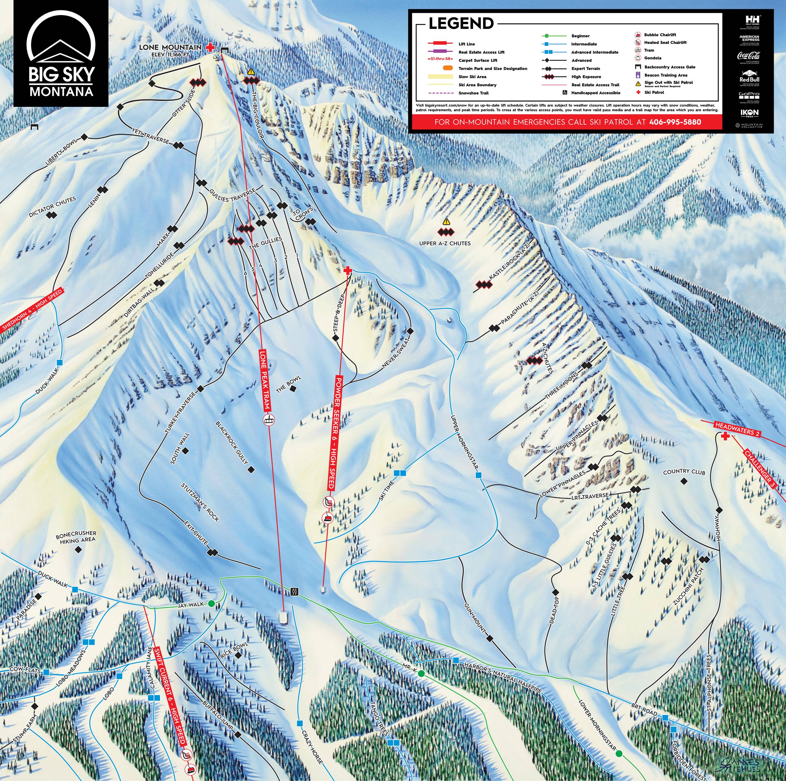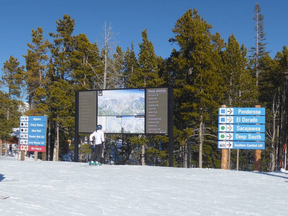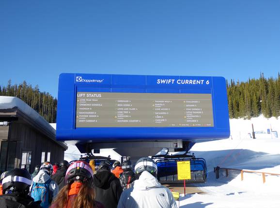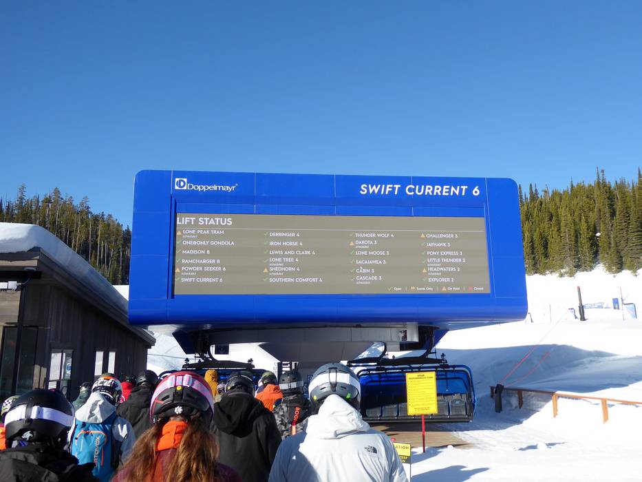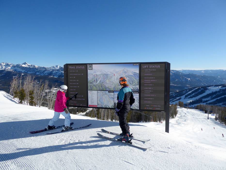 Der aktuelle Betriebsstatus der Anlagen wird in Echtzeit an den Talstationen der neueren und modernen Anlagen ausgezeichnet digital angezeigt. Auch im Skigebiet sind Pistenpläne mit digitalen Informationen verteilt. Mit der mobilen App des Big Sky Resorts erhält man zusätzlich Echtzeit-Updates und Informationen. Zu den wichtigen Anlagen werden sogar die Wartezeiten angezeigt. Alle Pisten und Abfahrten sind vorbildlich ausgeschildert und markiert. Somit findet man sich in einem der größten Skigebiete in den USA sehr gut zurecht.