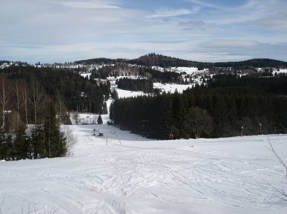Das Skigebiet Bischofsreut befindet sich in Almberg-Haidel-Dreisessel (Deutschland, Bayern, Bayerischer Wald).