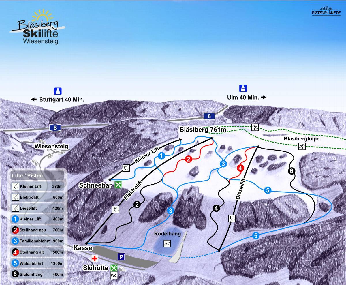 Orientierung (Pistenplan, Informationstafeln, Ausschilderung) und Sicherheit im Skigebiet Bläsiberg – Wiesensteig