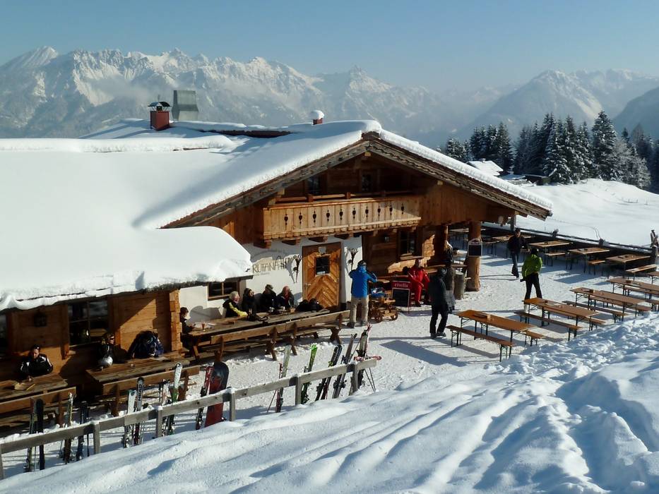 Familiär geführte, gemütliche Skihütte mit hausgemachten Spezialitäten und schöner Aussicht auf die Bergwelt im Panorama-Wintergarten.