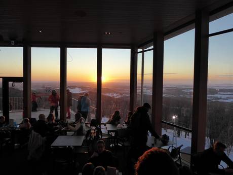Den Sonnenuntergang im Chalet du Sommet sollte man sich auf keinen Fall entgehen lassen. Hier kann man bei einem Glas Wein, Bier oder einem Cocktail den Skitag ausklingen lassen. Über die beleuchteten Pisten wedelt man anschließend ins Tal.
