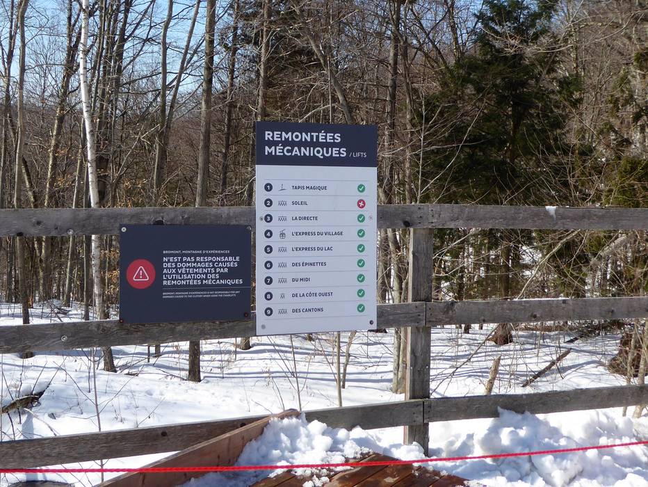 Orientierung (Pistenplan, Informationstafeln, Ausschilderung) und Sicherheit im Skigebiet Bromont