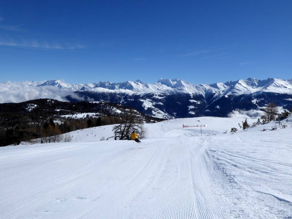 Von der Bergstation des Törbeltallifts lässt sich das gesamte Höhenspektrum des Skigebiets in einer einzigen langgezogenen Abfahrt in Süd-Nord-Richtung erschließen, die sich ebenso abwechslungsreich wie anspruchsvoll präsentiert.