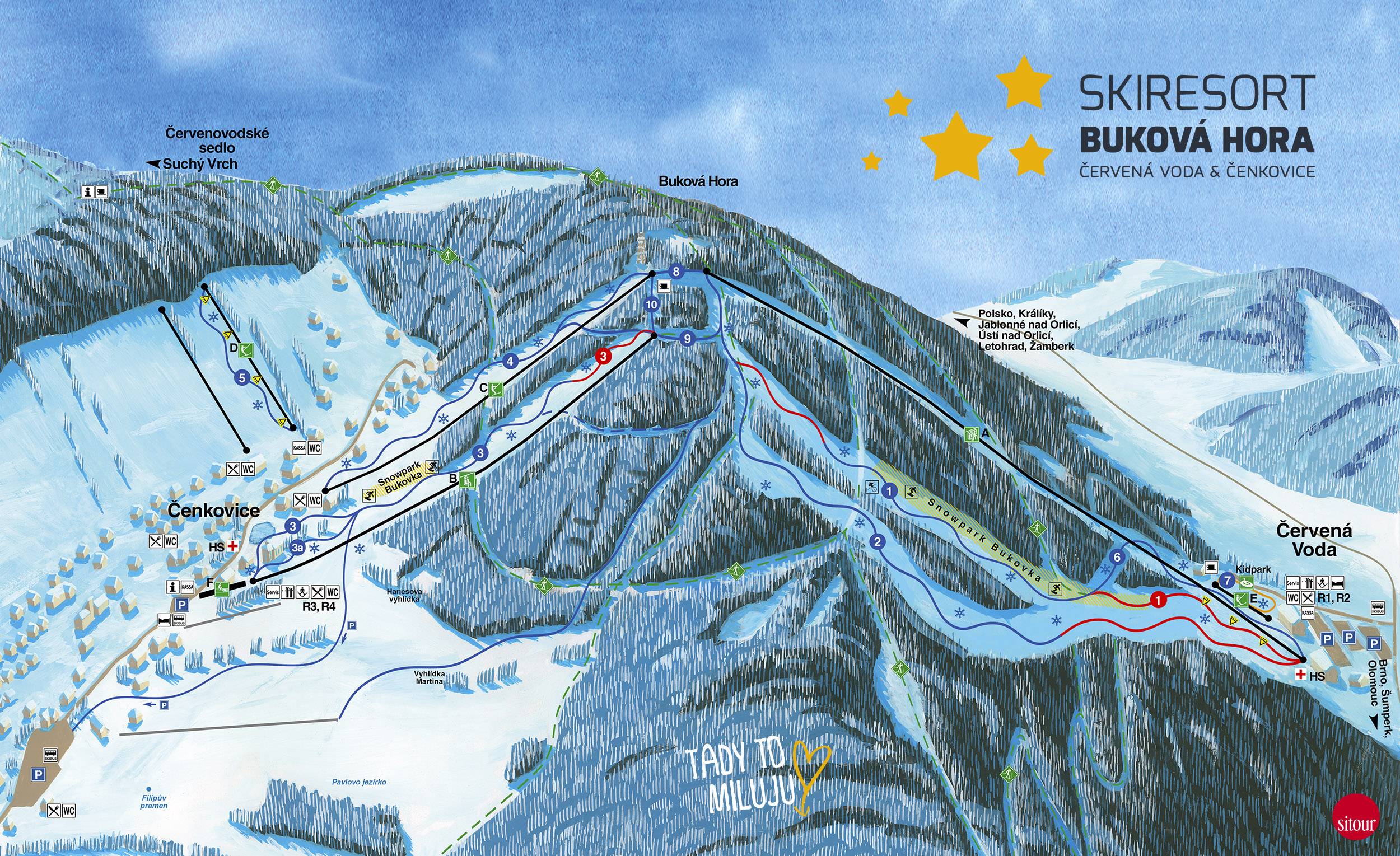 Pistenplan Buková hora – Čenkovice/Červená Voda Saison 2024/2025