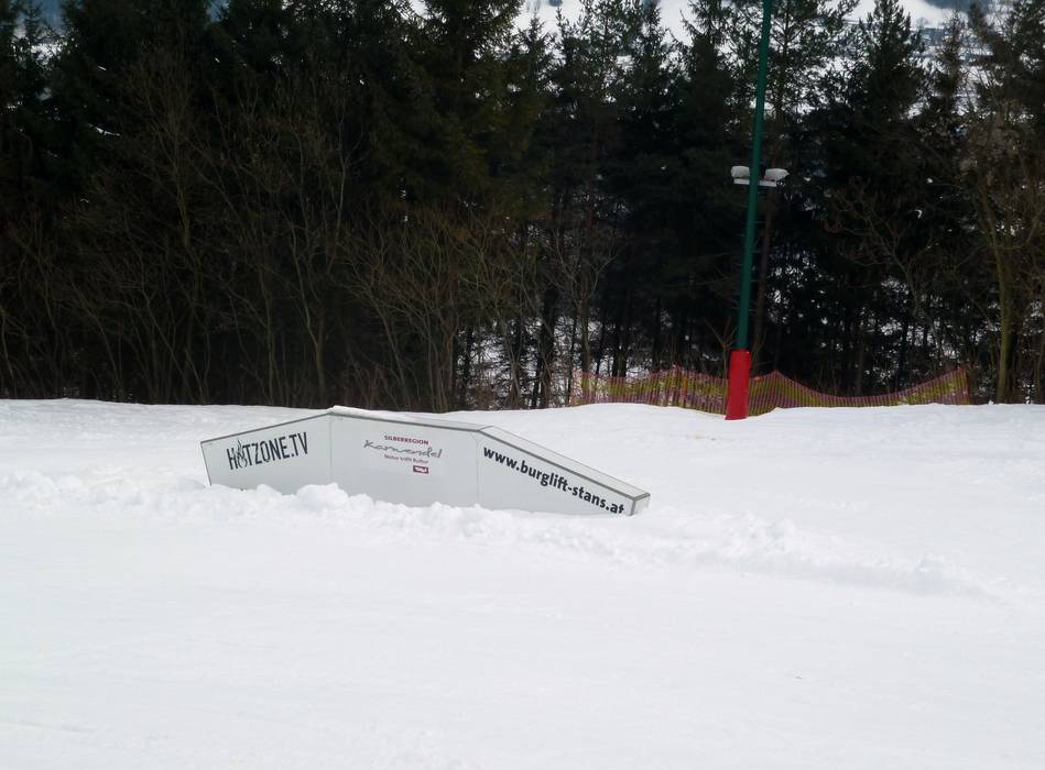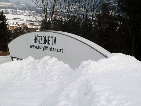 Im oberen Teil der Piste am Burglift in Stans befindet sich der Snowpark. Über Rails und Kicker geht es talwärts. Es lockt auch eine Chillarena mit Musik. Der Park ist für Könner, wie auch für Anfänger sehr gut geeignet.