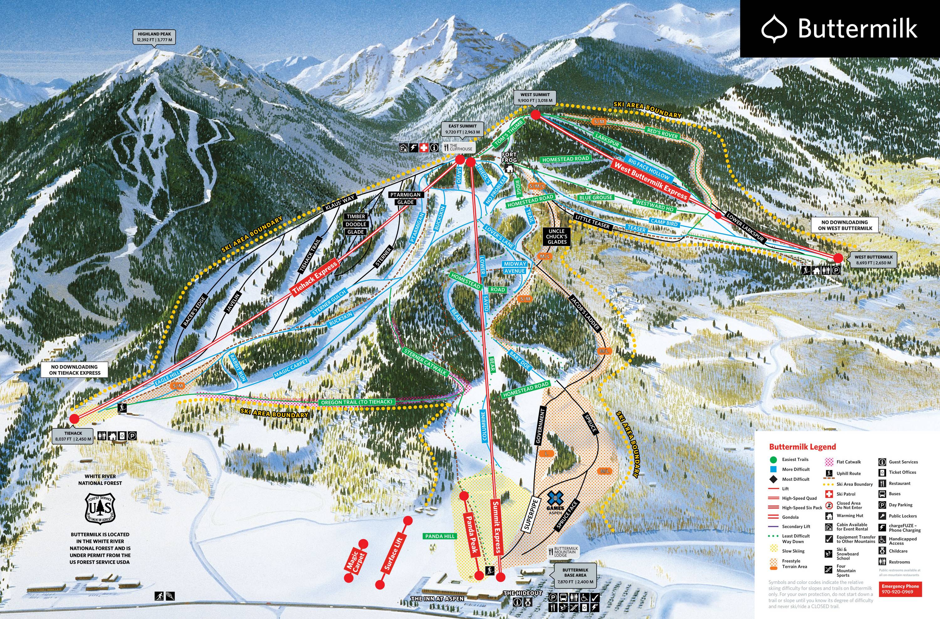 Orientierung (Pistenplan, Informationstafeln, Ausschilderung) und Sicherheit im Skigebiet Buttermilk Mountain