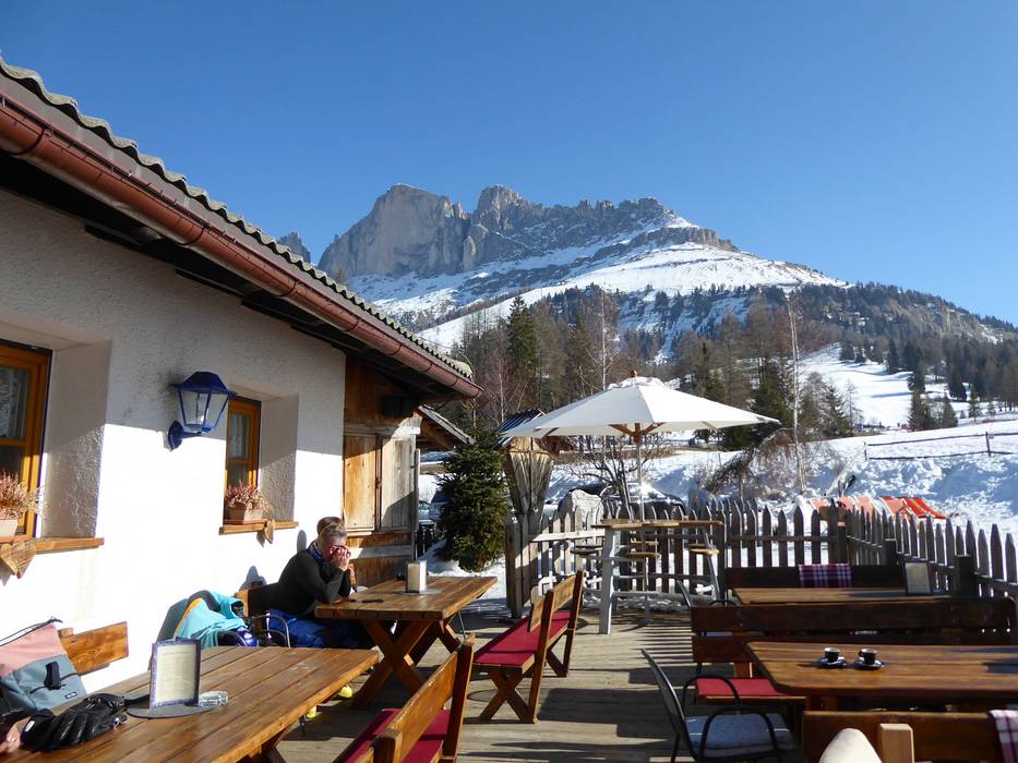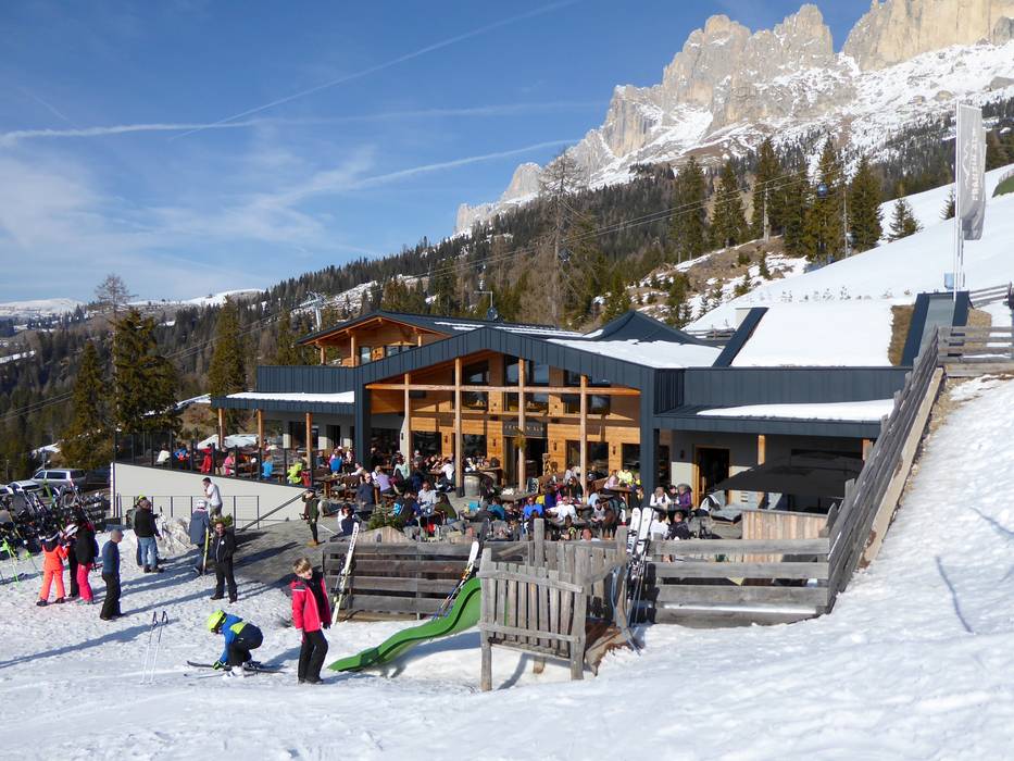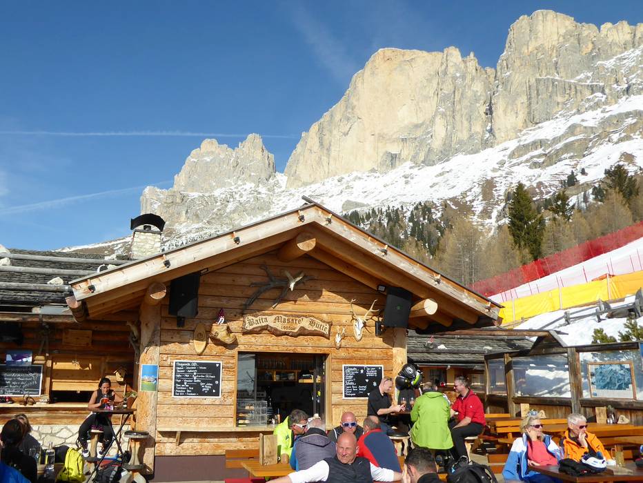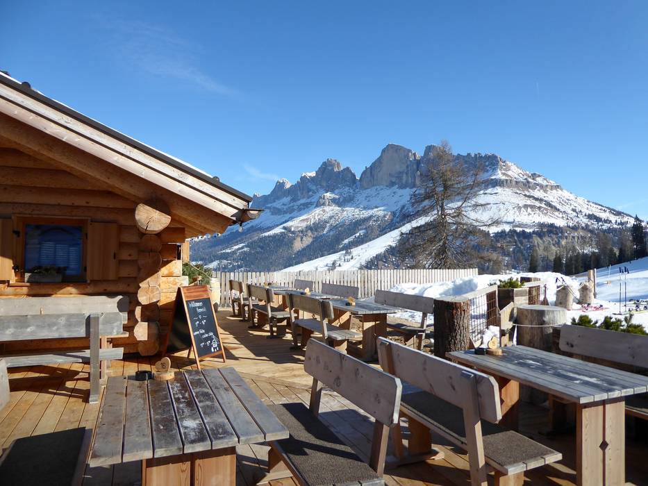 Eine der urigsten Hütten mit bodenständiger Südtiroler Küche im Skigebiet. Hier kann man die Spezialitäten des Hauses in der gemütlichen Stube oder auf der Sonnenterrasse mit herrlichem Blick auf die Dolomiten genießen.
