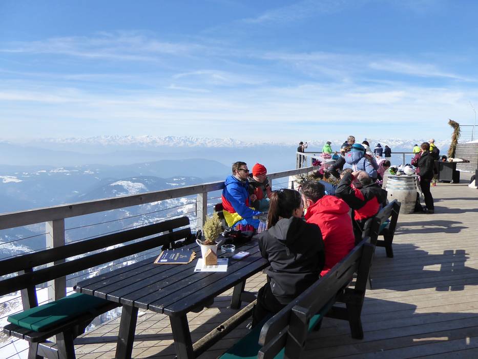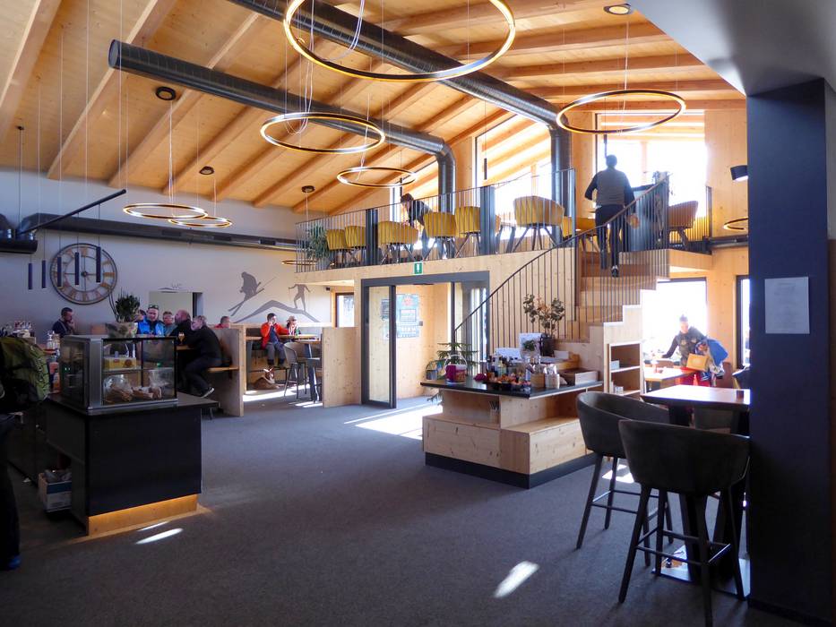 Am höchsten Punkt des Skigebiets, auf beeindruckenden 2.337 Metern, thront die Laurin's Lounge – mit einem unvergleichlichen Panoramablick über die majestätischen Dolomiten. Als höchste Panoramalounge Südtirols ist sie ein ganz besonderer Ort, an dem sich alpiner Lifestyle und stilvoller Genuss vereinen. Die exklusive Lounge begeistert mit einer großzügigen Sonnenterrasse, auf der man die klare Bergluft und die spektakuläre Aussicht in vollen Zügen genießen kann. Kulinarisch werden feine, moderne Gerichte sowie ausgewählte Weine serviert – perfekt abgestimmt auf entspannte Stunden in außergewöhnlicher Atmosphäre. An den Wochenenden sorgt ein DJ mit lässigen Beats für besondere Stimmung und macht die Lounge zu einem beliebten Treffpunkt für alle, die Skigenuss und stilvolle Après-Ski-Kultur miteinander verbinden möchten.