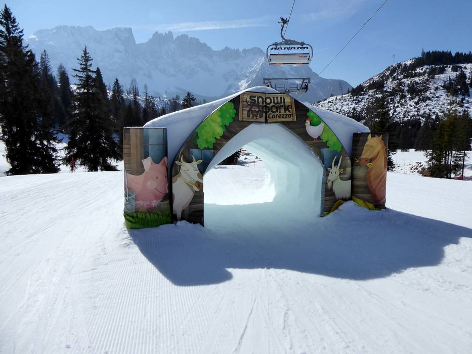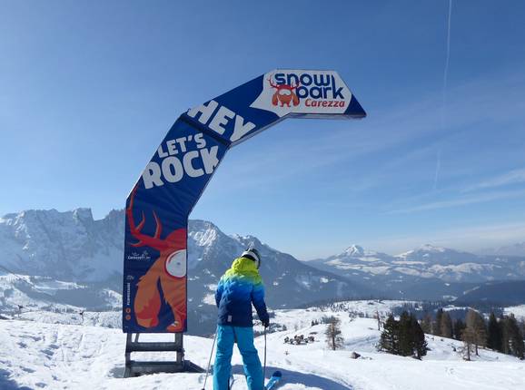 Der Snowpark Carezza befindet sich an der schnellen 6er-Sesselbahn Tschein. An der Tschein-Piste warten verschiedene Setups: die Family Fun Line und ein Kinder-Lern-Park für Beginner, eine Easy Line für fortgeschrittene Jumper und eine Medium Line für Halb-Profis. Hier schlagen Freestylerherzen höher.