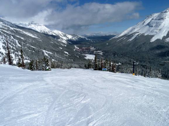 Blick auf das Skigebiet am Castle Mountain