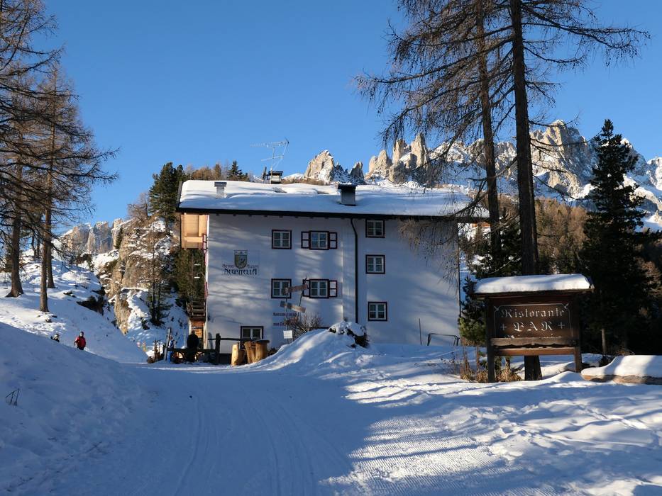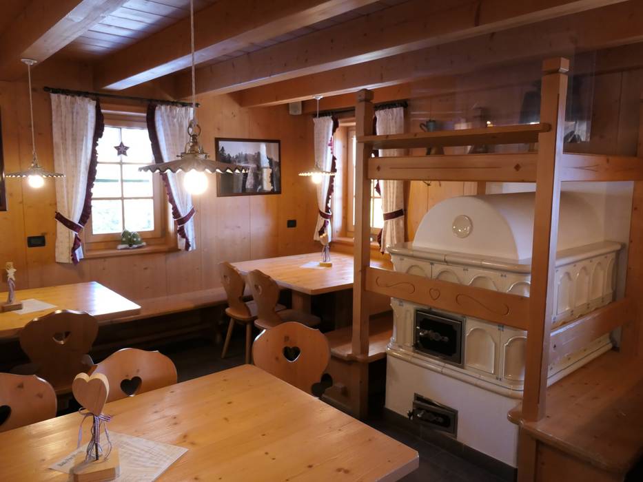 Die familiengeführte Hütte bietet eine herrliche Aussicht auf die Dolomiten. Hier kann man eine köstliche Pause auf der Sonnenterrasse einlegen oder sich in der Stube neben dem Holzofen aufwärmen.
