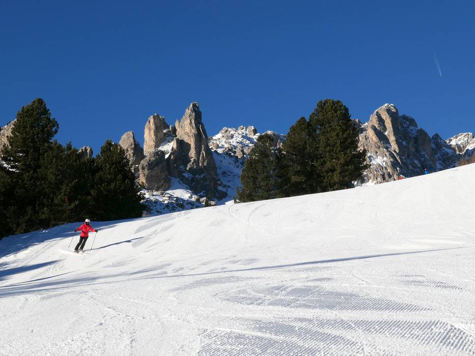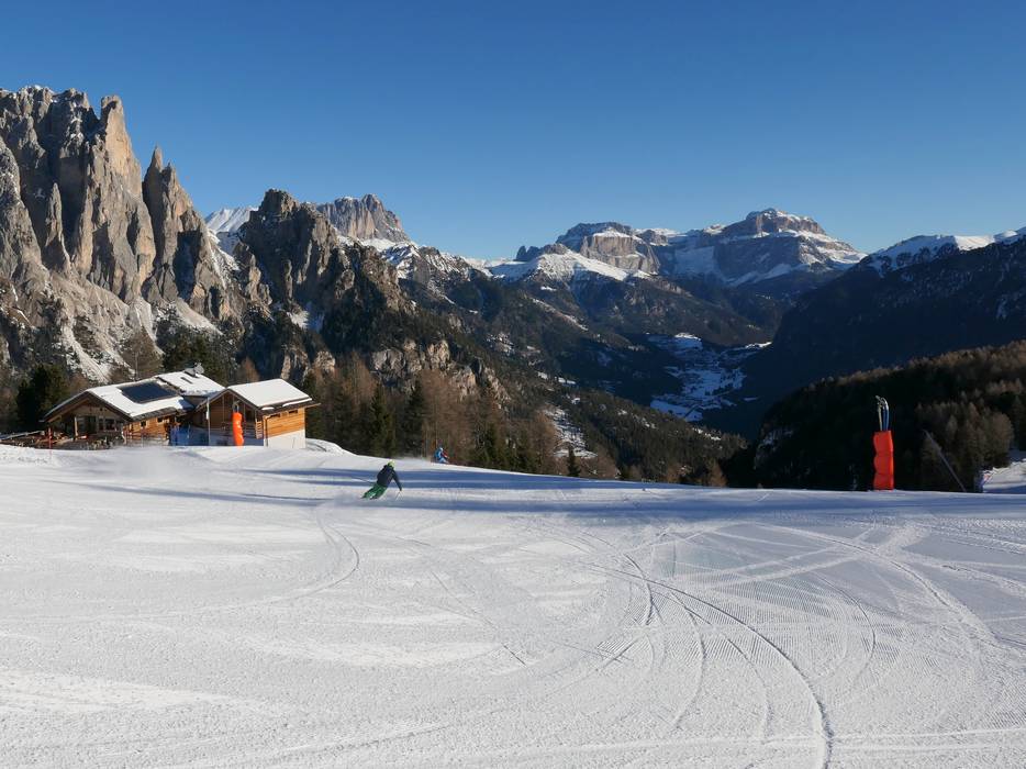 Nach Pera di Fassa führt eine leichte Talabfahrt, nach Vigo di Fassa eine mittelschwere.