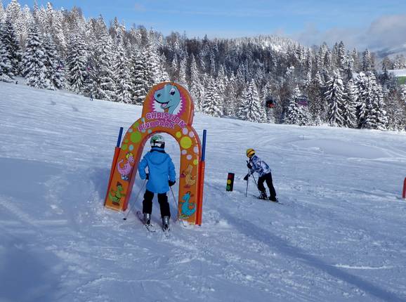 Beim Tellerlift DinoJet lernen die Kinder das Ski- und Liftfahren spielend.