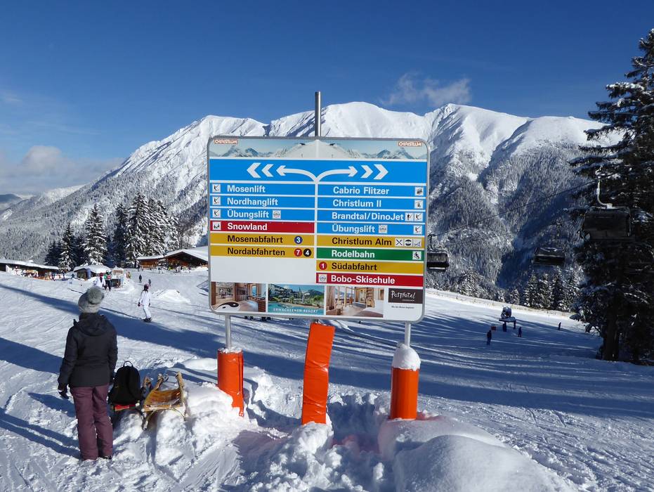 Orientierung (Pistenplan, Informationstafeln, Ausschilderung) und Sicherheit im Skigebiet Christlum – Achenkirch